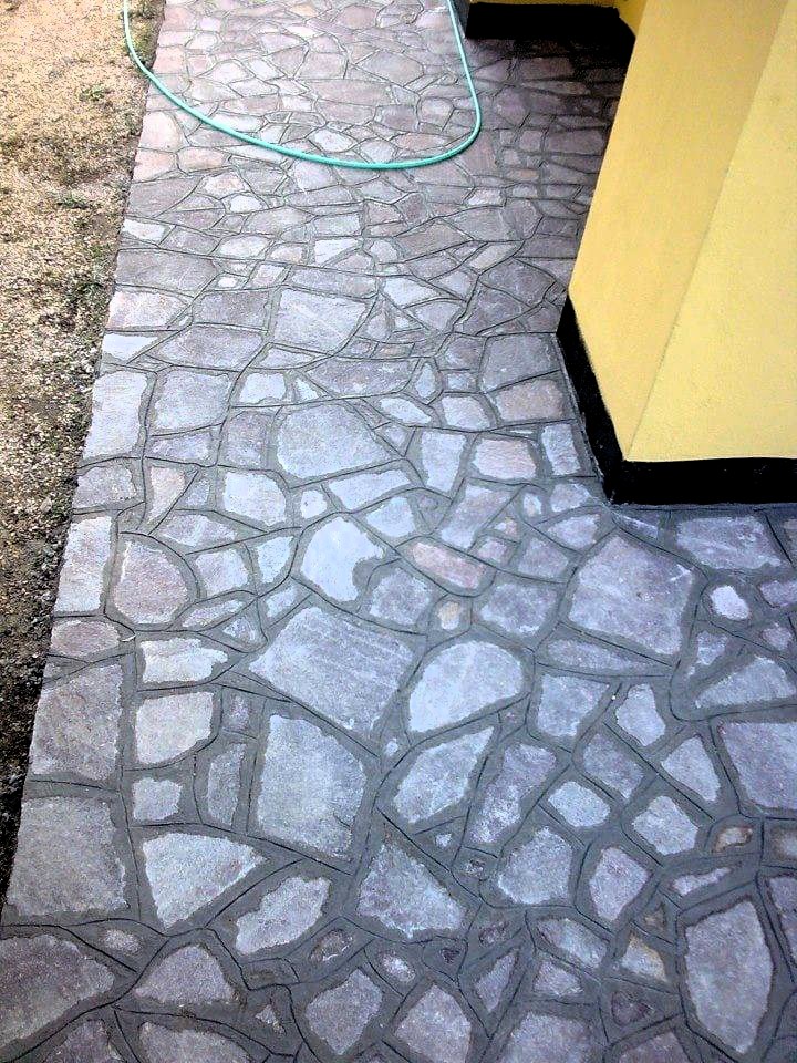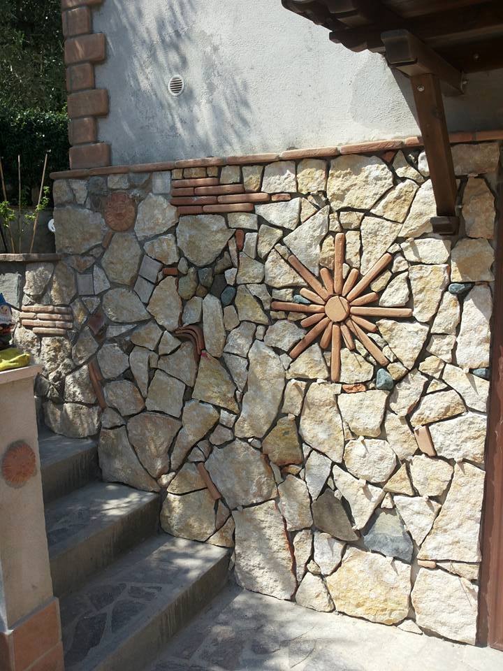 rivestimento in scorsa tipo arlecchino e pavimentazione in bollettonato di porfido